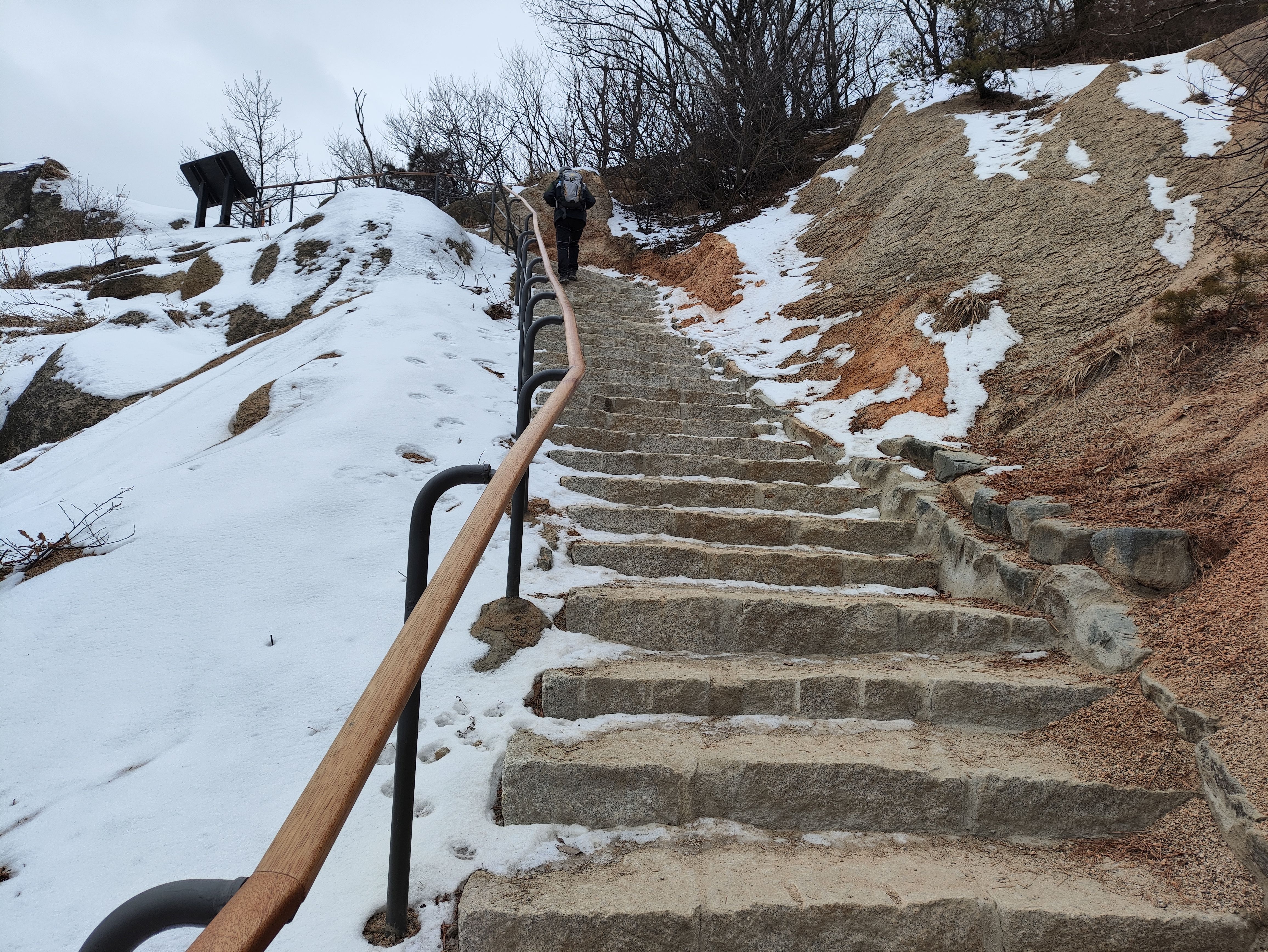 정상 가는 길에는 내가 좋아하는 흙길이... 아직 겨울이라 녹지 않은 눈이 보입니다. 2월이었어요 ㅎ