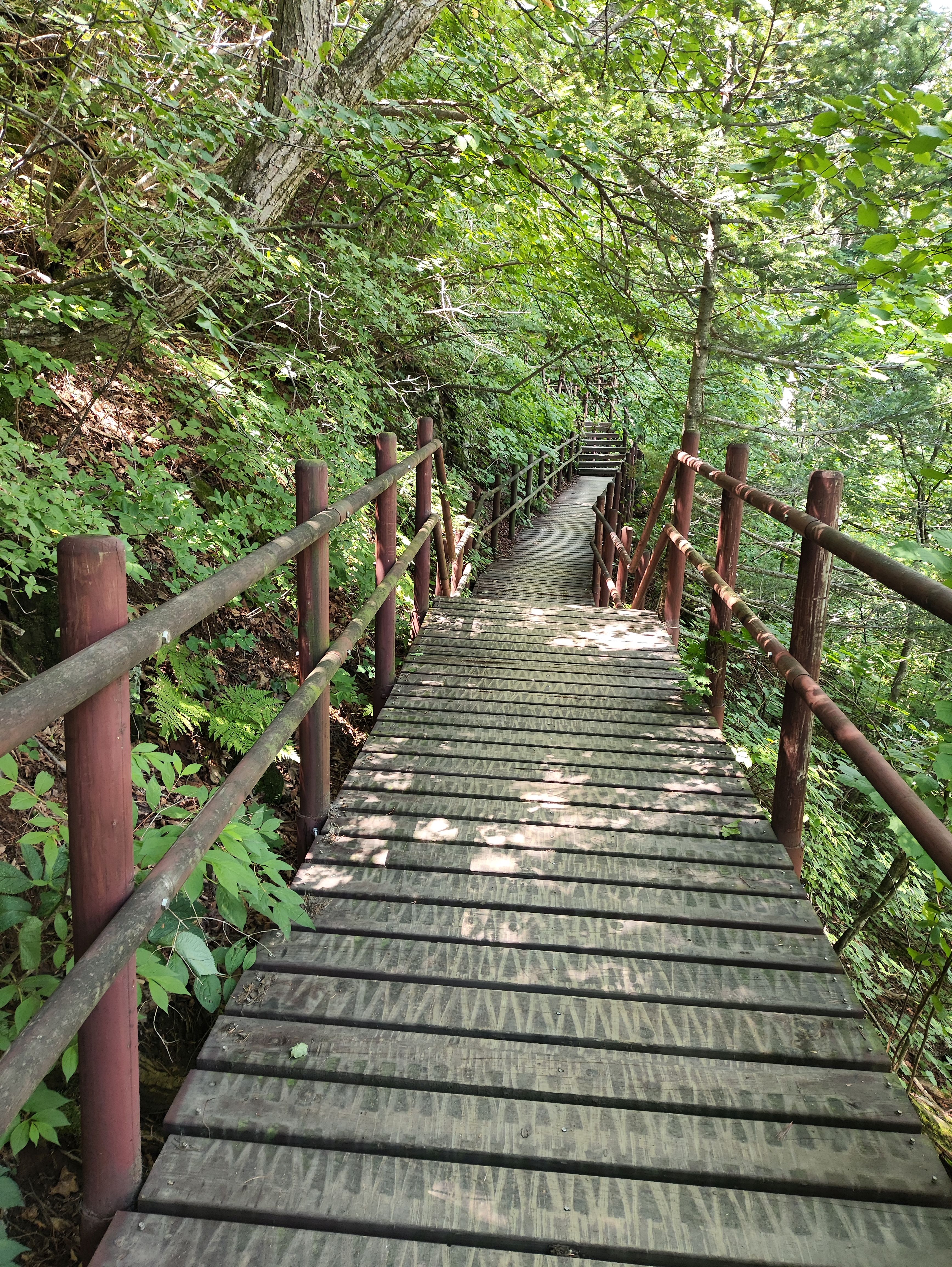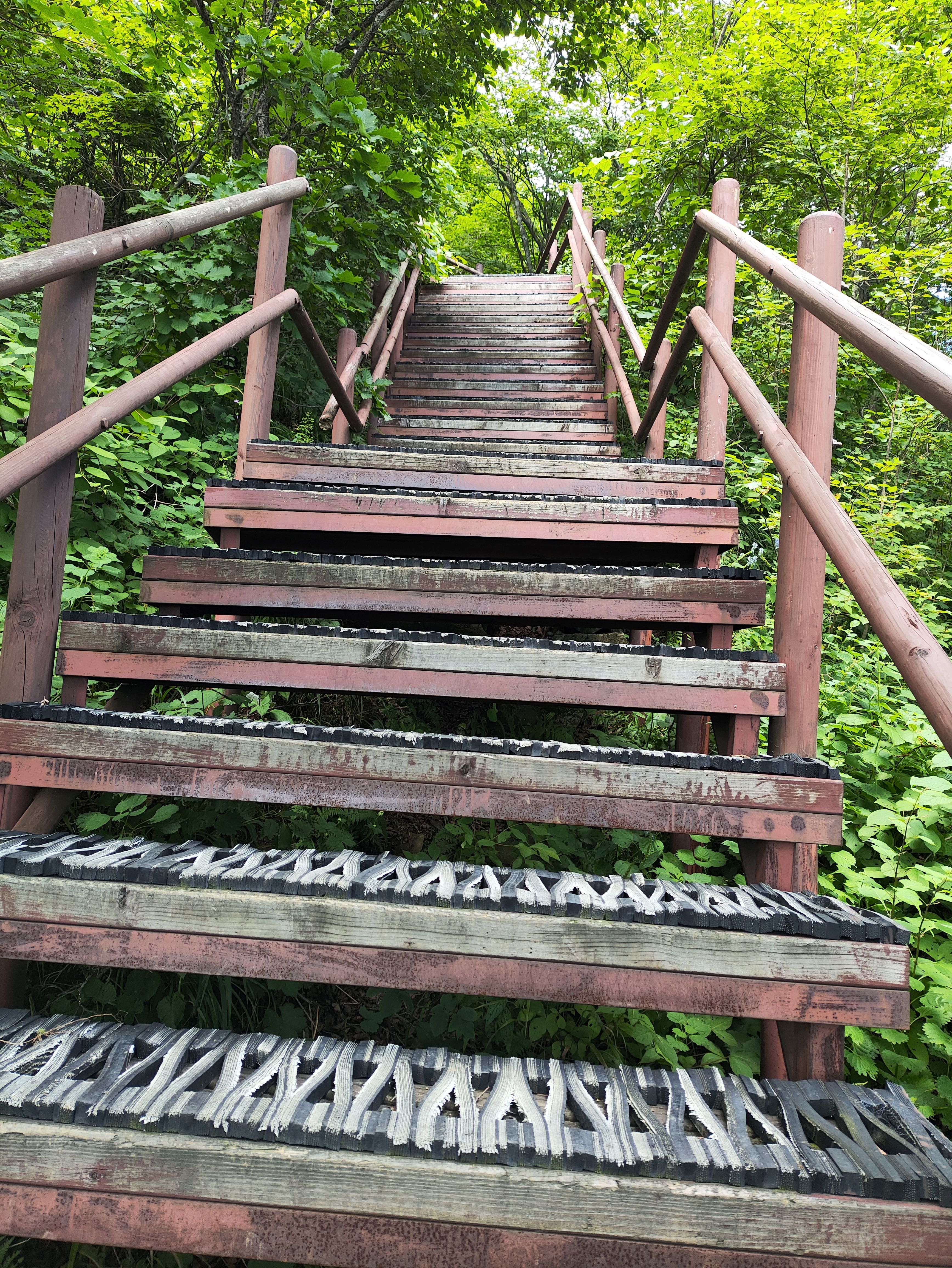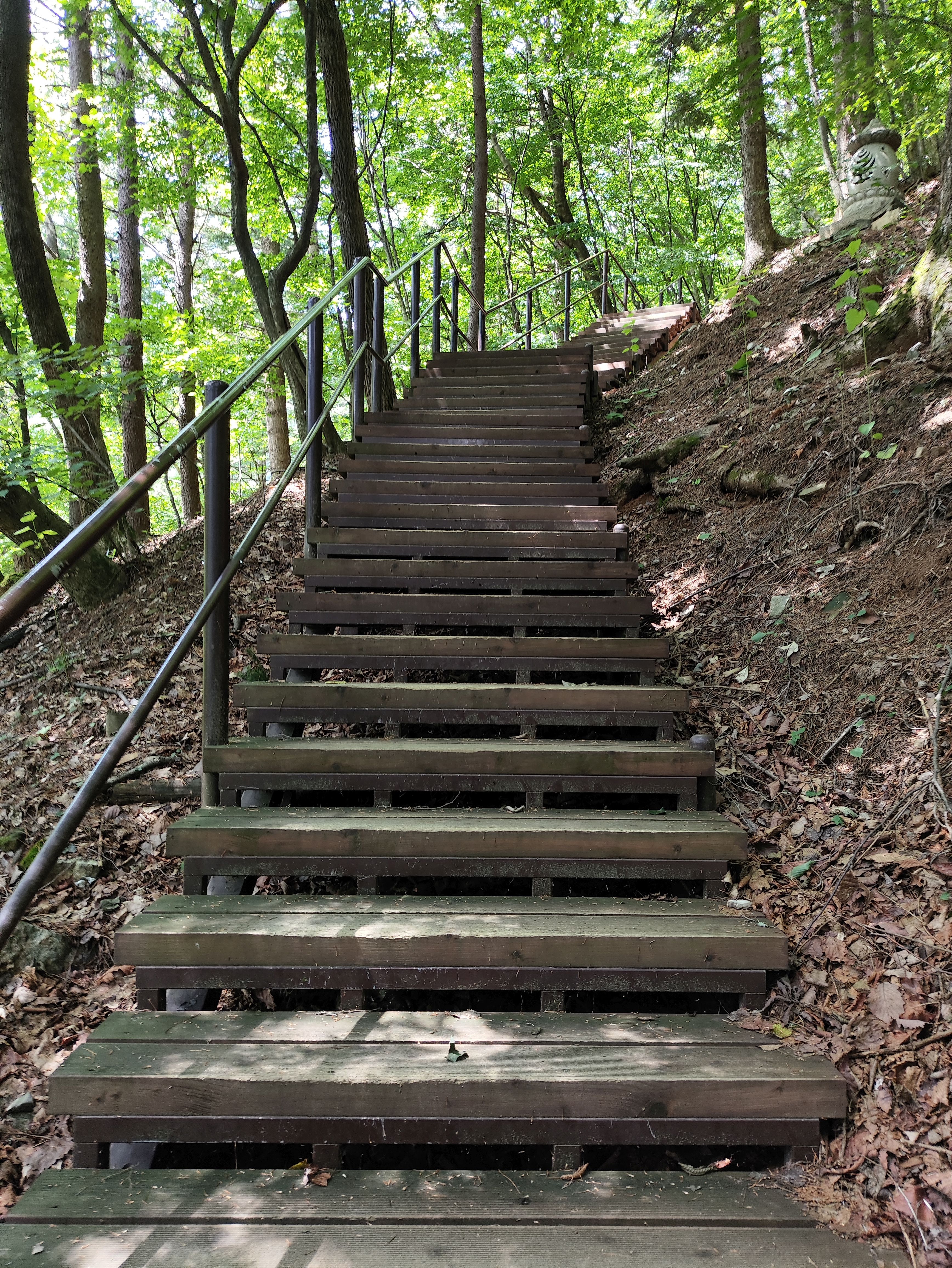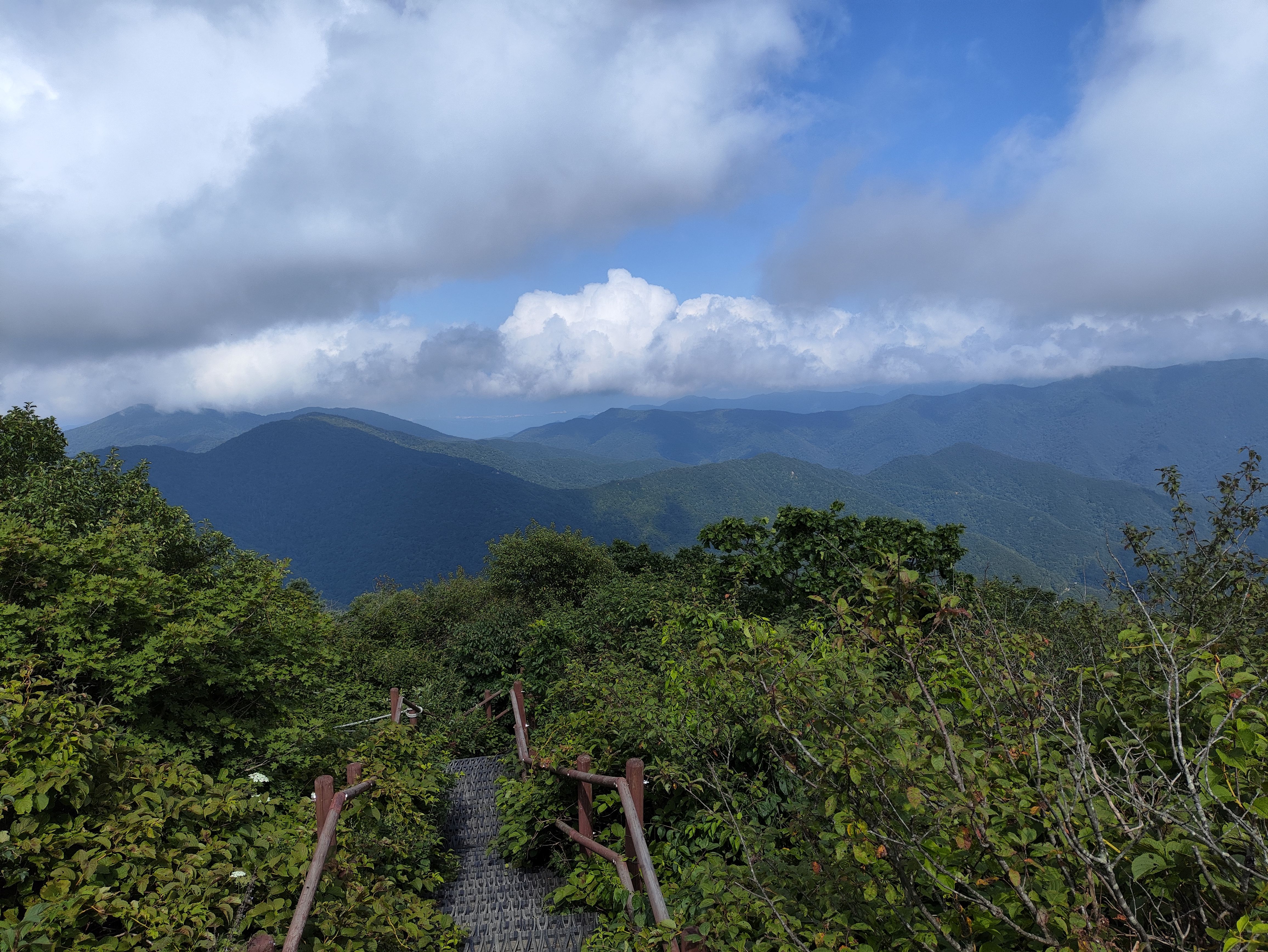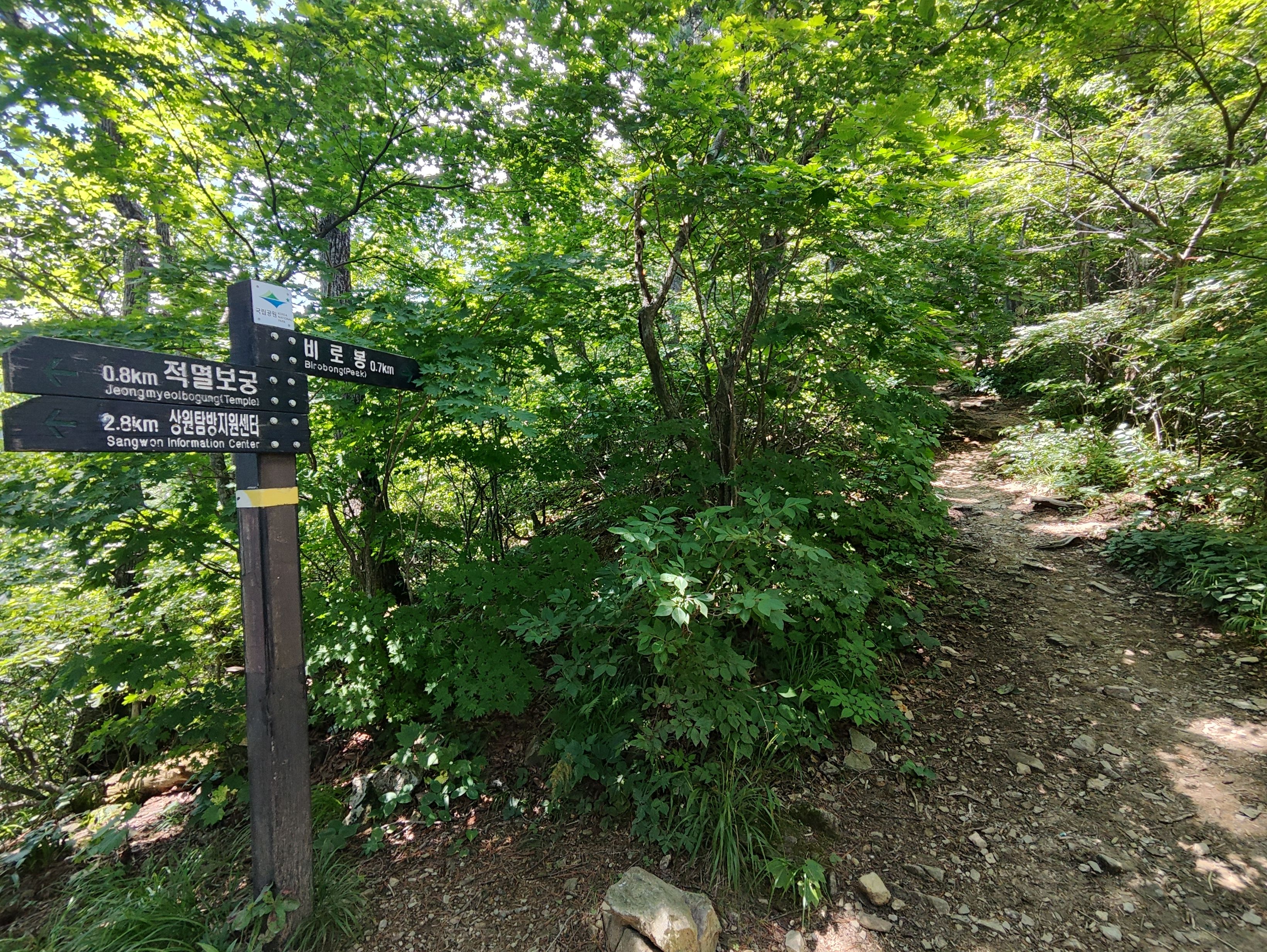 그래도 정상에 가까워질수록 가파른 철계단이 나타나 여름날엔 땀뻘뻘이긴 합니다. 그래도 덜 힘들편이라는 점을 강조하고 싶네요.. 지리,월출,월악,치악 등등... 에 비하면 산세의 가파름의 정도가 덜 합니다. 결정적으로 흙산이라 힘든 바위 탈 일은 없습니다. 비로봉까지 오르락 내리락도 없습니다.