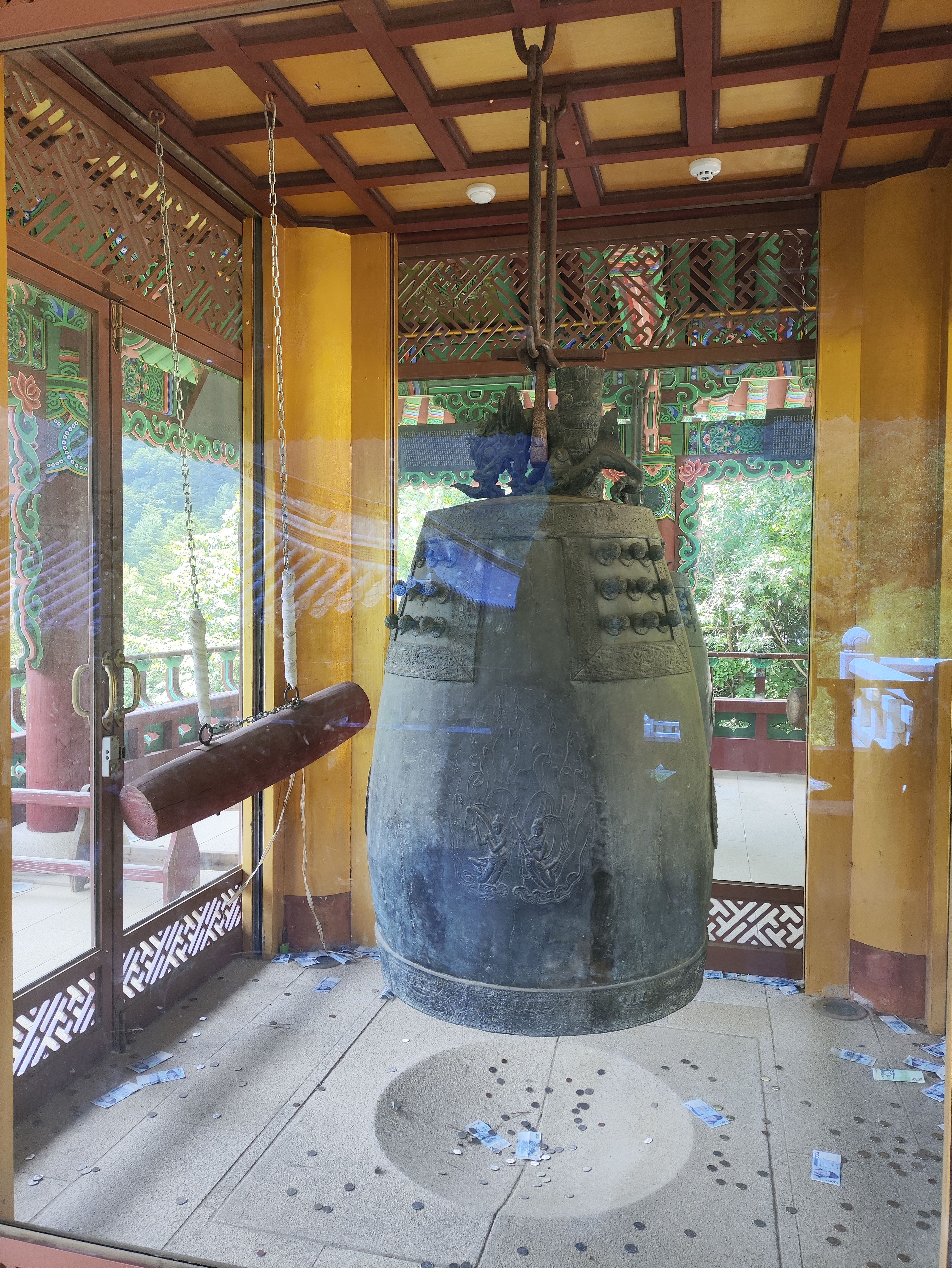 상원사 동종. 우리나라에서 가장 오래된 종입니다. 한국사 교과서에서 성덕대왕 신종(에밀레종)과 더불어 문제 보기로 잘 나오는 종... 최고(最古)는 상원사 동종, 최대는 성덕대왕 신종으로 배웠던 것 같은데, 요즘은 더 큰 종도 있을 수 있으니 최대는 성덕대왕 신종이 아닐 수 있습니다. 어쨌건 상원사 동종이 최고(最古)..
