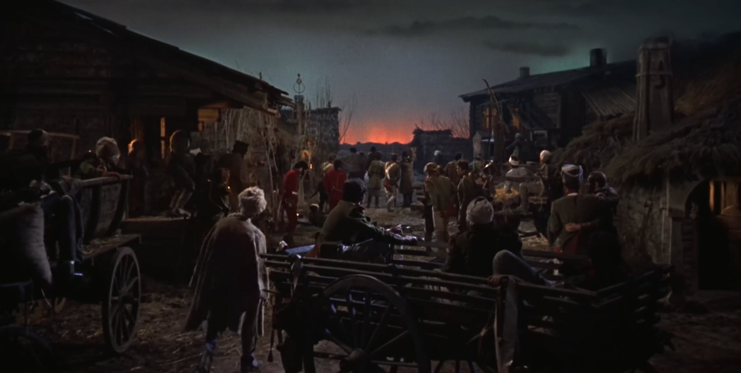 일단 전투씬에 등장하는 인원이 엄청나고 그 소품들은 또 얼마나 많은지 전투 장비는 둘째치고 그 인원들이 입은 군복들 비용만 해도 어마어마하겠다는 생각이 들더군요. 거기에 모스크바에 대화재가 나는 장면(가상의 도시 세트임)도 정말 무지막지하게 불태웁니다. 이 장면은 영화 해설하는 비디오를 보면 무지막지하게 태우고 위험할 정도로 촬영해대고..