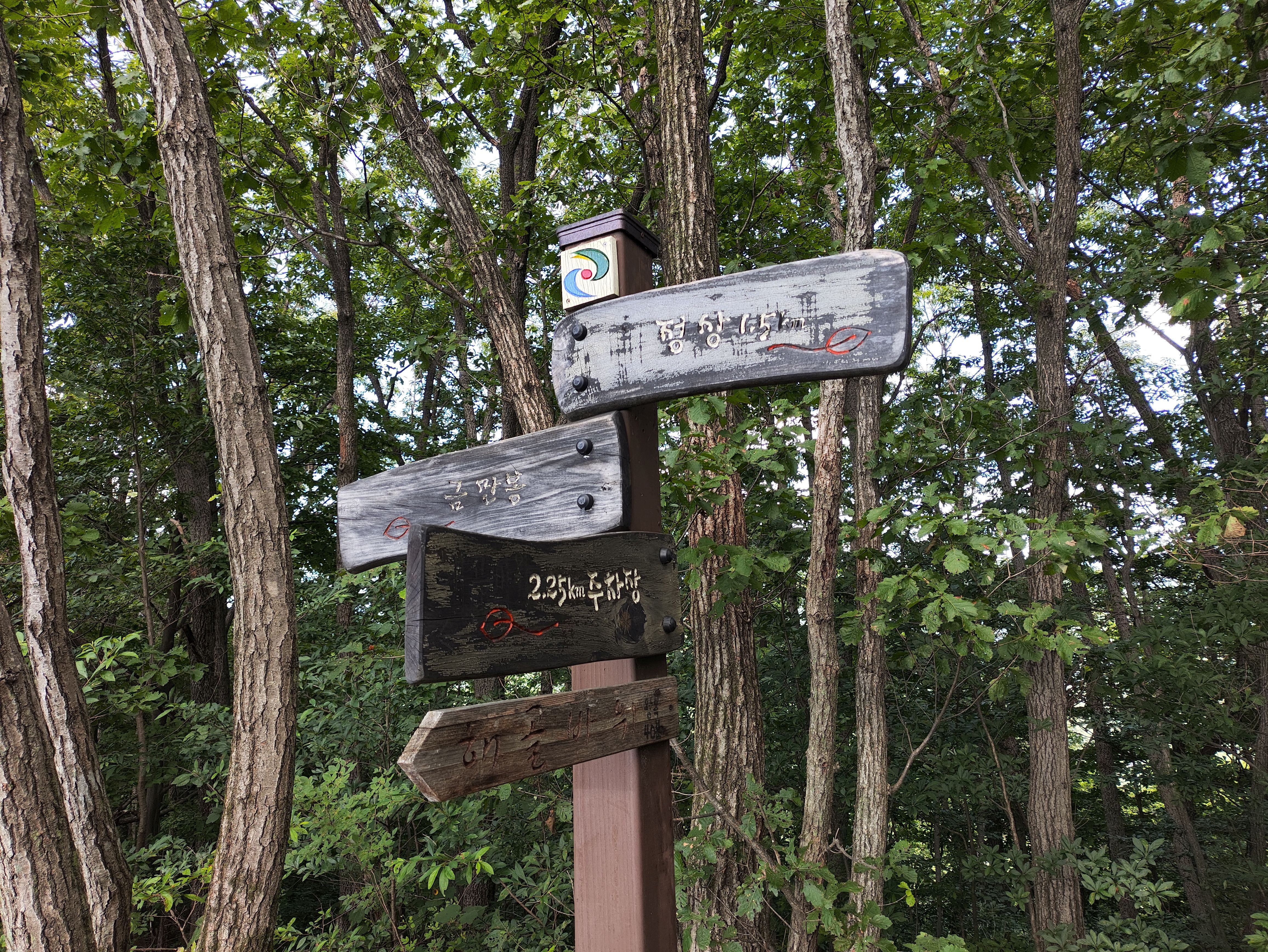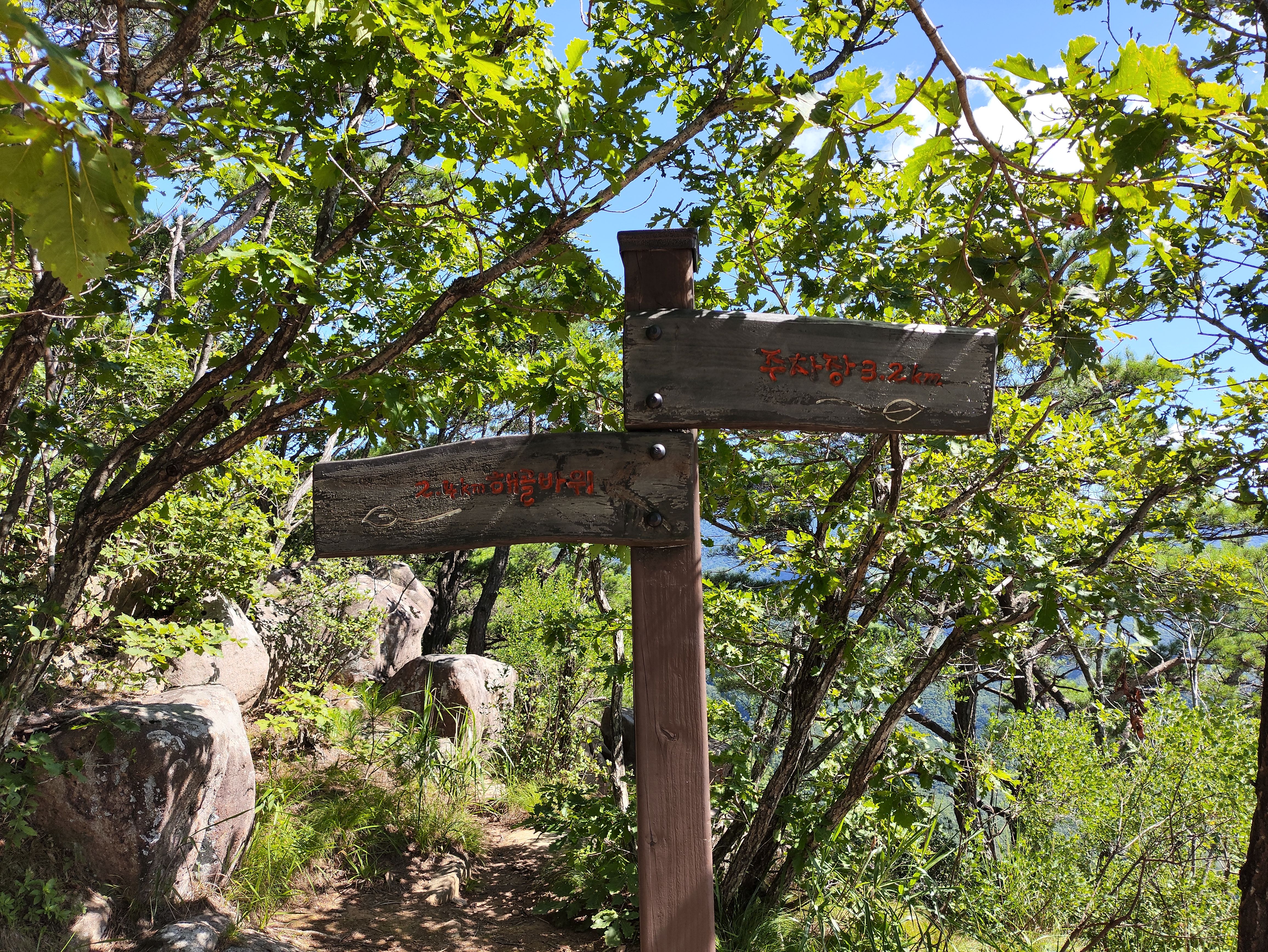 이제 하산합니다. 주차장까지 3.2km 내요.
