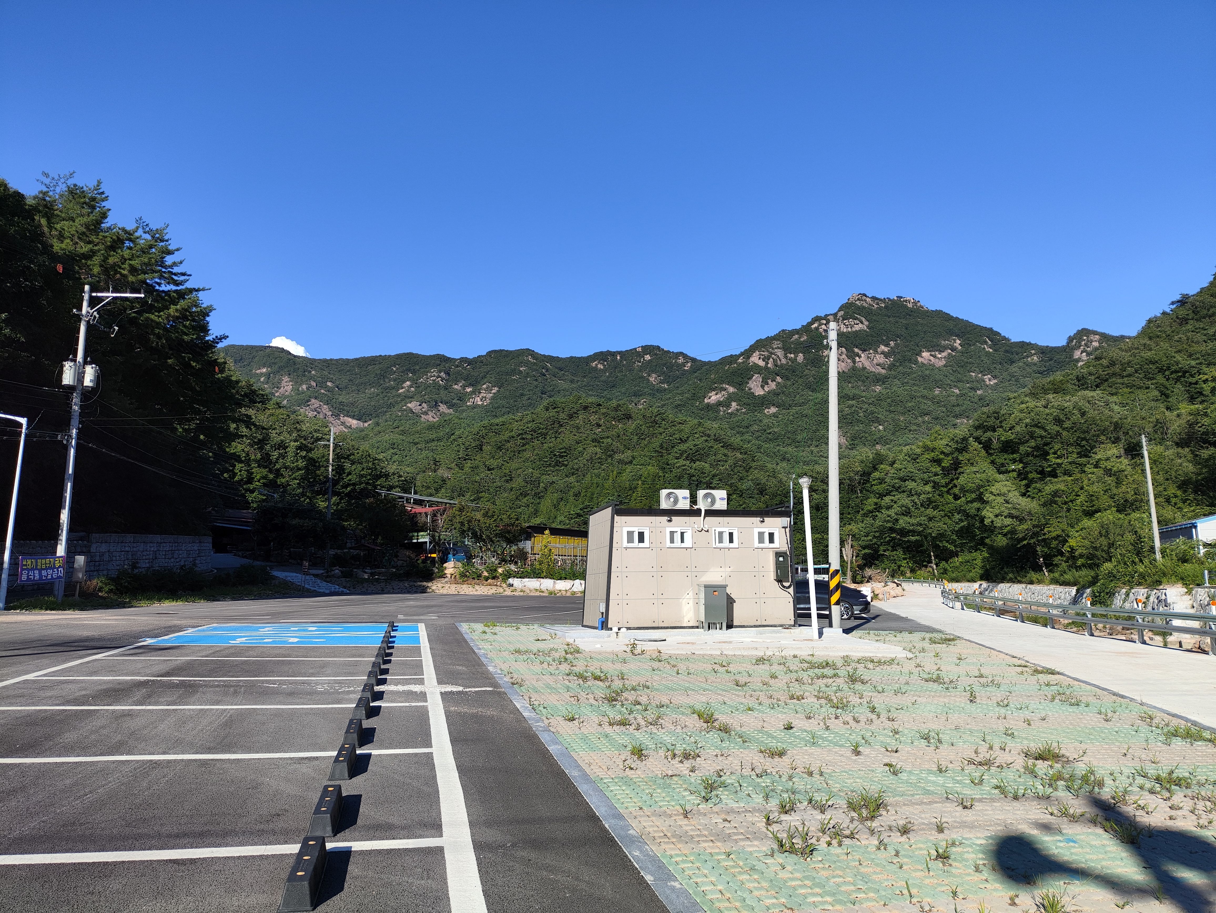 그런데 이 더위에 등산은 인기가 떨어집니다. 장군봉 주차장입니다. 네이버에는 장군봉소형차주차장으로 나옵니다. 일요일인데 주차된 차량은 얼마 없지만 실제 등산중에는 적지않은 등산객을 만날 수 있었습니다.