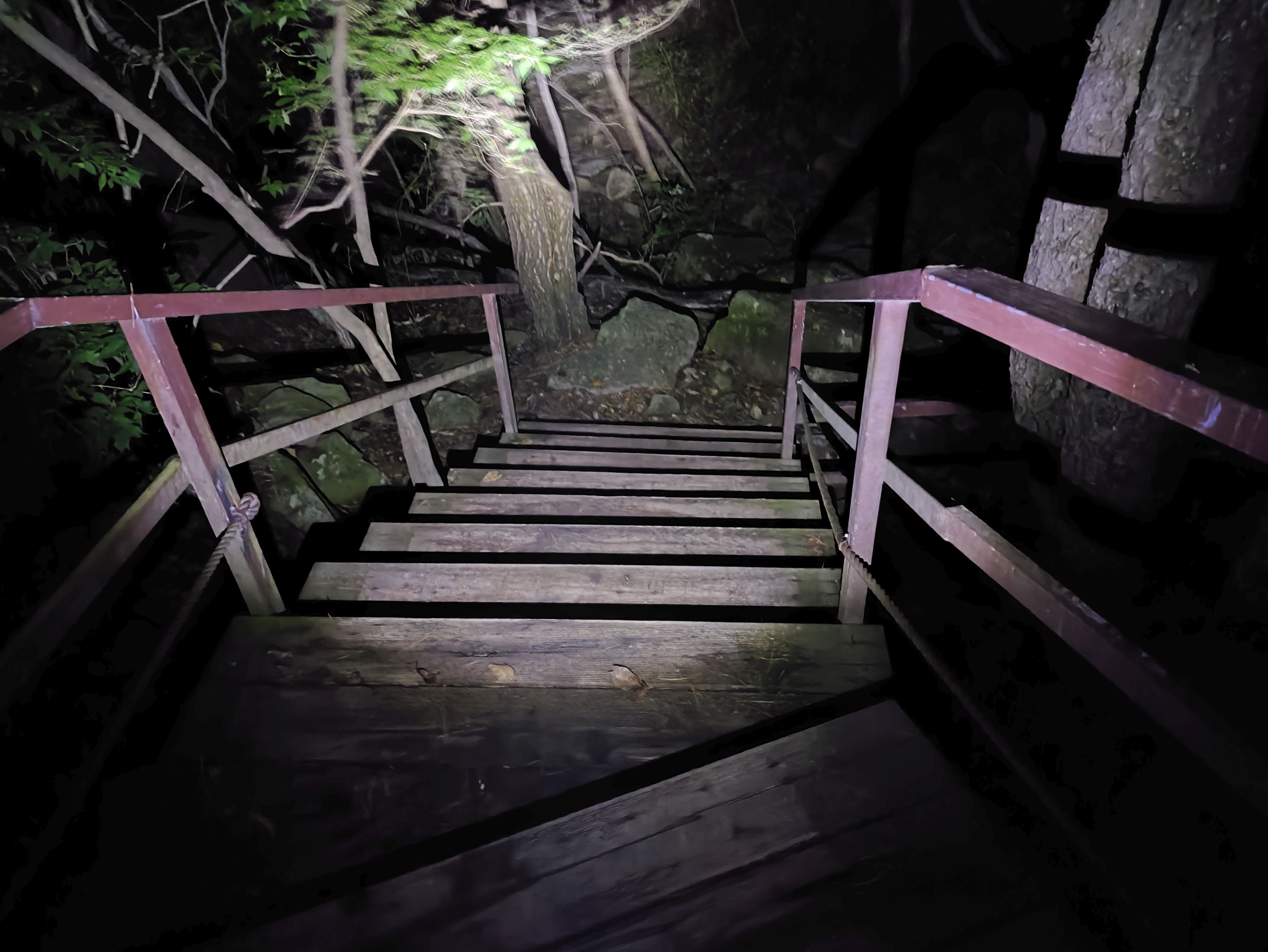 실상은 이러함.... 결국엔 야간하산이 되었습니다. 다행히 유비무환으로 손 후레쉬를 준비했습니다. 왼손엔 후레쉬, 오른손엔 스틱하나에 의지해 내려왔습니다. 아무도 없는 컴컴한 야간 산행길.. 사실 야간 산행은 여러번 해봤으나 대부분 도시 근처(북한산, 관악산)라 멀리서 불빛도 보이고 개 짖는 소리, 닭우는 소리도 들리고 그래서 덜 부담스러웠는데 이곳은 그야말로 칠흙인데 하산 완전히 끝날때까지 불빛이 전혀 안 보이더군요. 백미터 남은 듯 한데 불빛이 안보여.. ㅎㅎ
