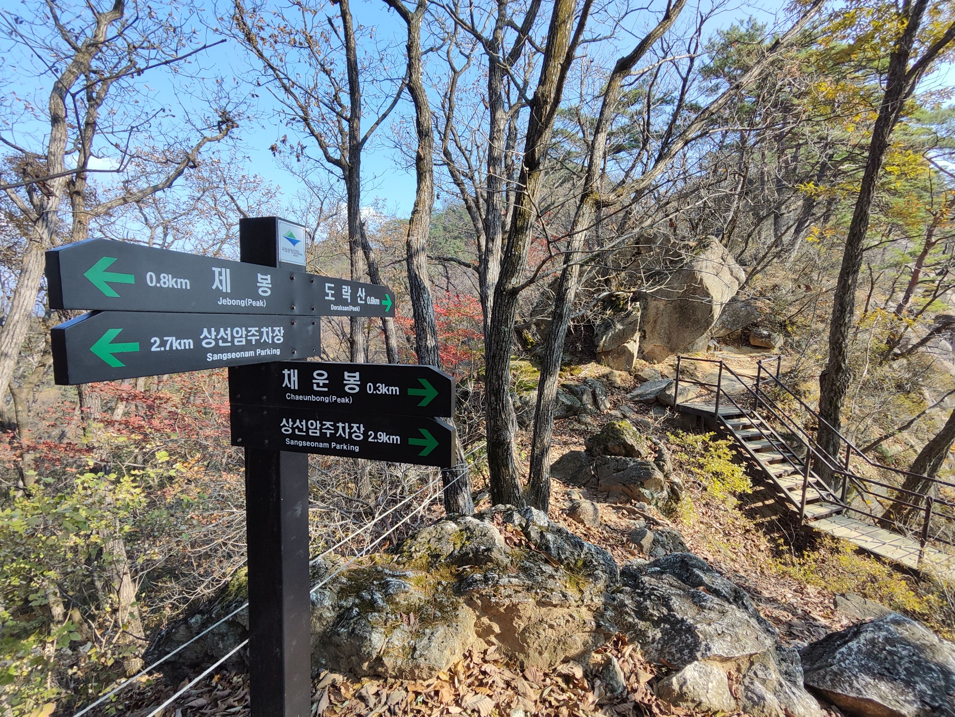 주차장에서 5분정도 걷다보면 채운봉 방향과 제봉방향으로 코스가 갈라졌다 정상부근에서 합쳐지는데 저는 올라갈땐 제봉방향으로 내려올땐 채운봉방향으로 내려왔습니다.