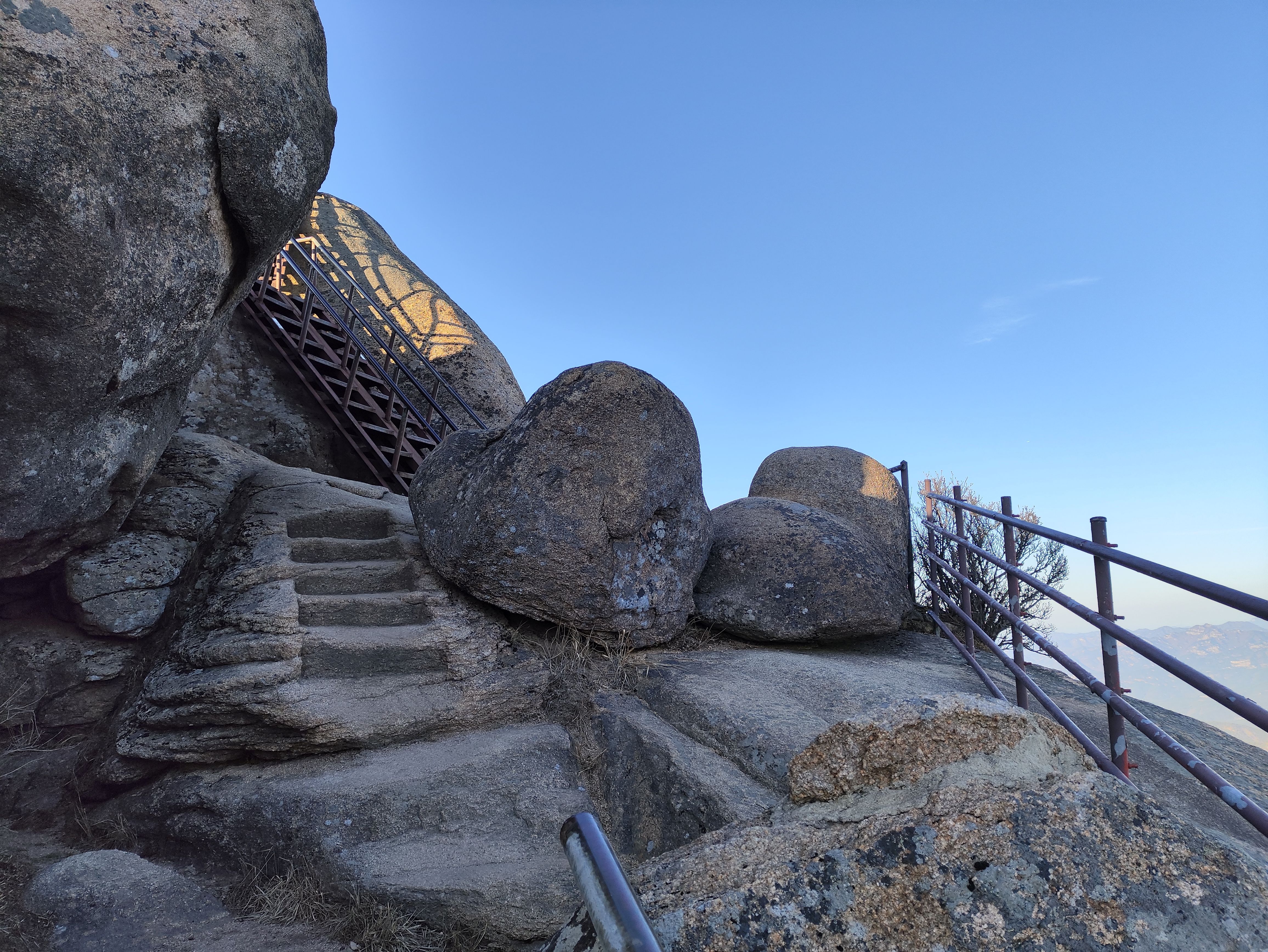 드디어 문장대 코앞. 안내석이 두개나 되는데 아마도 오른쪽 것이 더 최근 것 같은데 굳이 두개씩이나 필요할까요. 오른쪽 것엔 행정주소상 경상북도 상주라고 정확한 주소까지 적어놨는데 좀 속물적 마인드 같아 보입니다. 그렇게까지 상주에 속한 다는 걸 들어내고 싶었을까싶은.. 보기 좋지는 않네요. 그냥 속물스러운...